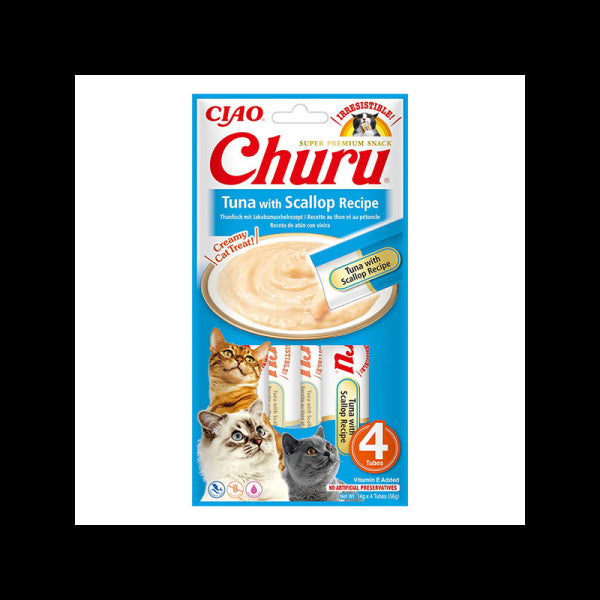 Churu skanėstai katėms, kurių sudėtyje mažai kalorijų, gausu drėgmės ir nėra grūdų. Gardus kreminis užkandis iš tuno ir šukučių, mėgstamas visų kačių! Churu tuna with scallop – minkšti kačių skanėstai su tunu ir šukutėmis.