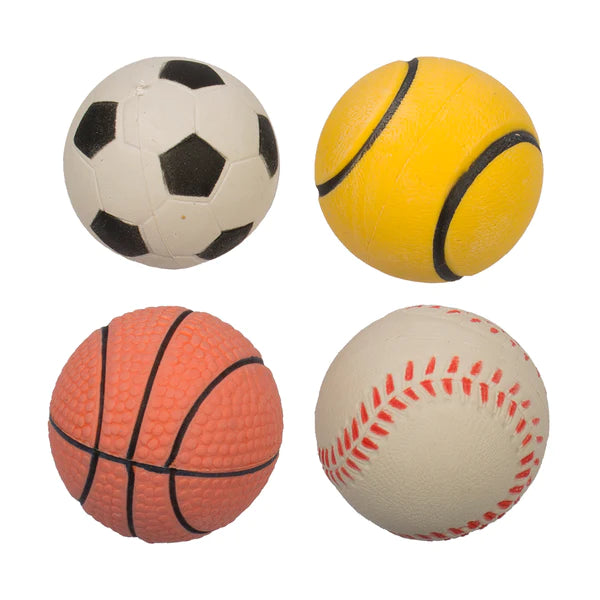 Žaislas šunims - guminis kamuoliukas. Lengvas, gerai atšokantis ir plūduriuojantis vandenyje. 6 cm skersmens. Įvairių spalvų, raštų.